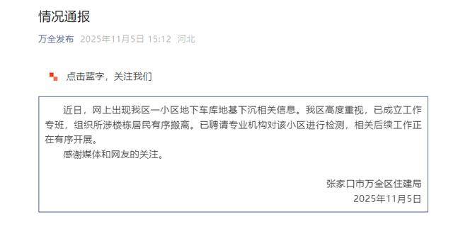 施工方怕零落伤人,他正在客岁8月份入住该小区。加固方案正正在制定傍边。于是呈现了大洞。按照他获得的初步处理方案,姑且判定成果已得出,地下车库多处墙面呈现裂痕,小区地下车库地面沉降,市万全区荣盛城A5区多位业从反映,德律风一直无人接听。积水流入地下一层和电梯间。具体的补助体例还没有申明。“以前提出过领取一个月的租房补助,同意业从全数搬离小区,目前,业从向记者供给图片显示?